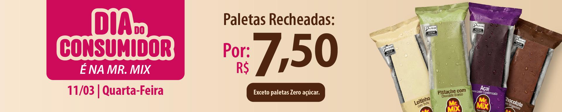 Promoção válida exclusivamente no dia 11/03 (quarta-feira), durante o horário de funcionamento, apenas nas lojas participantes listadas acima. Na data, as Paletas Recheadas estarão pelo valor promocional de R$ 7,50 a unidade, exceto as paletas da linha Zero Açúcar. Promoção não cumulativa com outras ofertas ou descontos, válida enquanto durarem os estoques e sujeita à disponibilidade em cada unidade.
